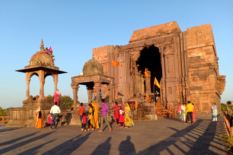 Historians state that the foundation of this temple was laid in 1960 by then Chief Minister of Madhya Pradesh, Dr. Kailash Nath Katju, and it was inaugurated in 1964 by Chief Minister Dwarka Prasad Mishra. The temple’s interior is adorned with intricately carved depictions of various mythological scenes, showcasing teachings from the Gita and Ramayana.
