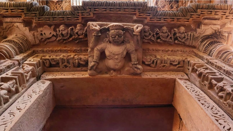 The temple exhibits all the architectural features typical of Bundela temples, including a Nat Mandap, Bhog Mandap, and circumambulation path.